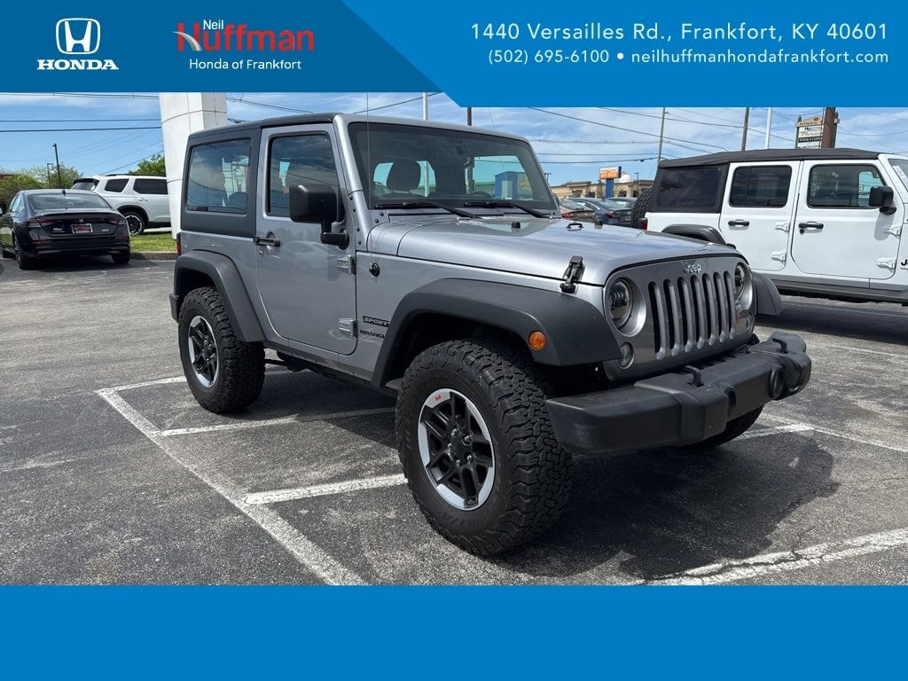 Recent Arrival! 2017 Jeep Wrangler Sport 2D Sport Utility Billet Silver Metallic Clearcoat 4WD 3.6L V6 24V VVT 5-Speed Automatic *LOCAL TRADE IN*, *LOW MILES*, *4 WHEEL DRIVE / 4X4*, *BLUETOOTH*, *REAR BACK UP CAMERA*, *AUTO TRANS*, *V6 POWER*, *3 YEARS COMPLIMENTARY MAINTENANCE INCLUDED*, *ASK ABOUT OUR LOW FINANCING OPTIONS*, *ASK ABOUT OUR EXTENDED WARRANTY OPTIONS*, *HUFFMAN PLATINUM PLAN WARRANTY INCUDED*. 17/21 City/Highway MPG
